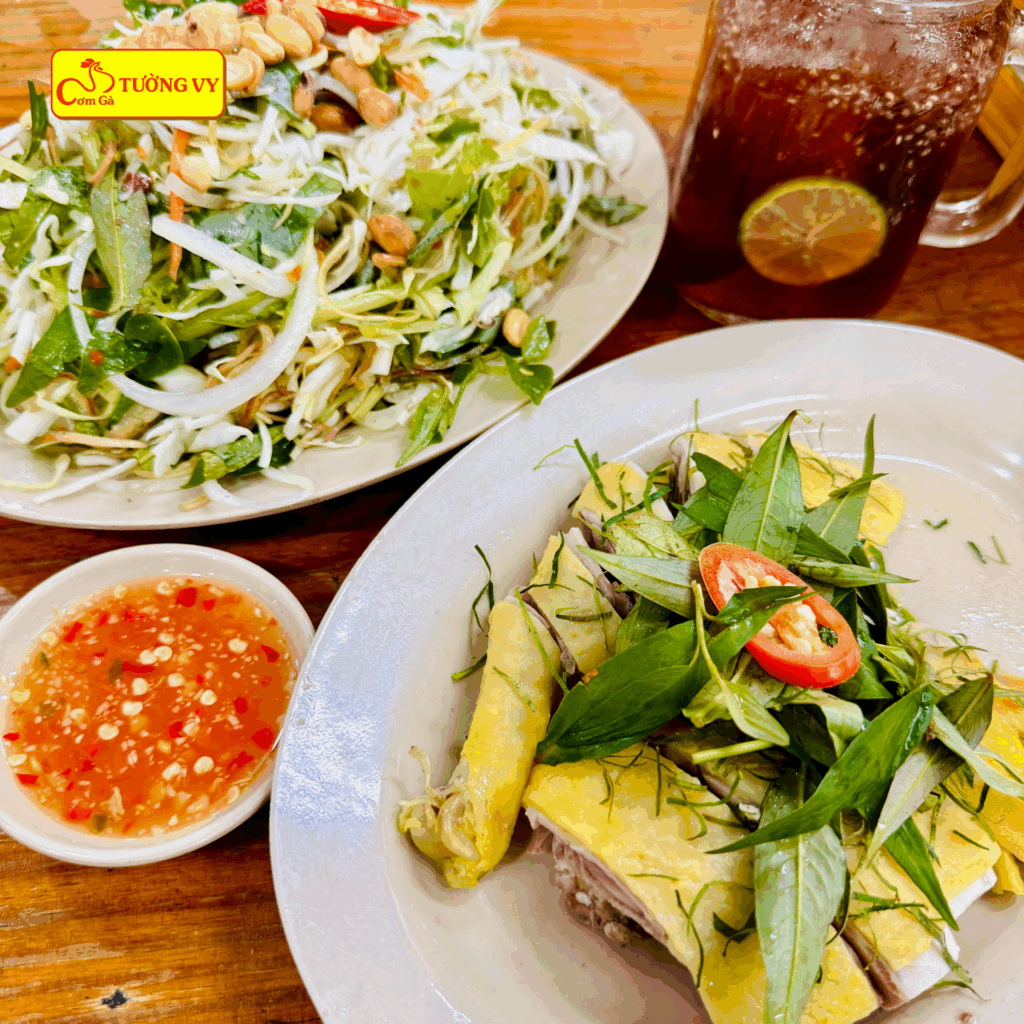 Và nếu hôm nào trời trong xanh, hãy thử ghé Tường Vy, gọi dĩa gà ta luộc vàng ươm, chấm mắm gừng cay cay – đảm bảo vị ngon kéo mood lên cao liền luôn nha khách iu! 😍