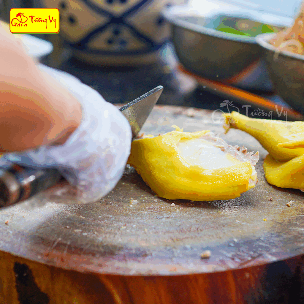 Không giống với gà công nghiệp nuôi nhanh, gà ta miền Trung được thả vườn tự nhiên, chạy nhảy nhiều nên thịt săn chắc, ít mỡ, da vàng giòn và giữ được vị ngọt tự nhiên. Khi chế biến, từng thớ thịt vẫn giữ độ dai nhẹ, hương thơm đậm đà, tạo nên sự khác biệt rõ rệt so với nhiều loại gà khác trên thị trường.