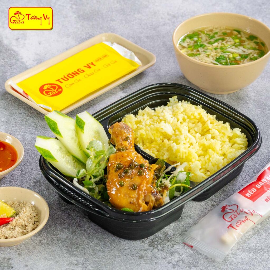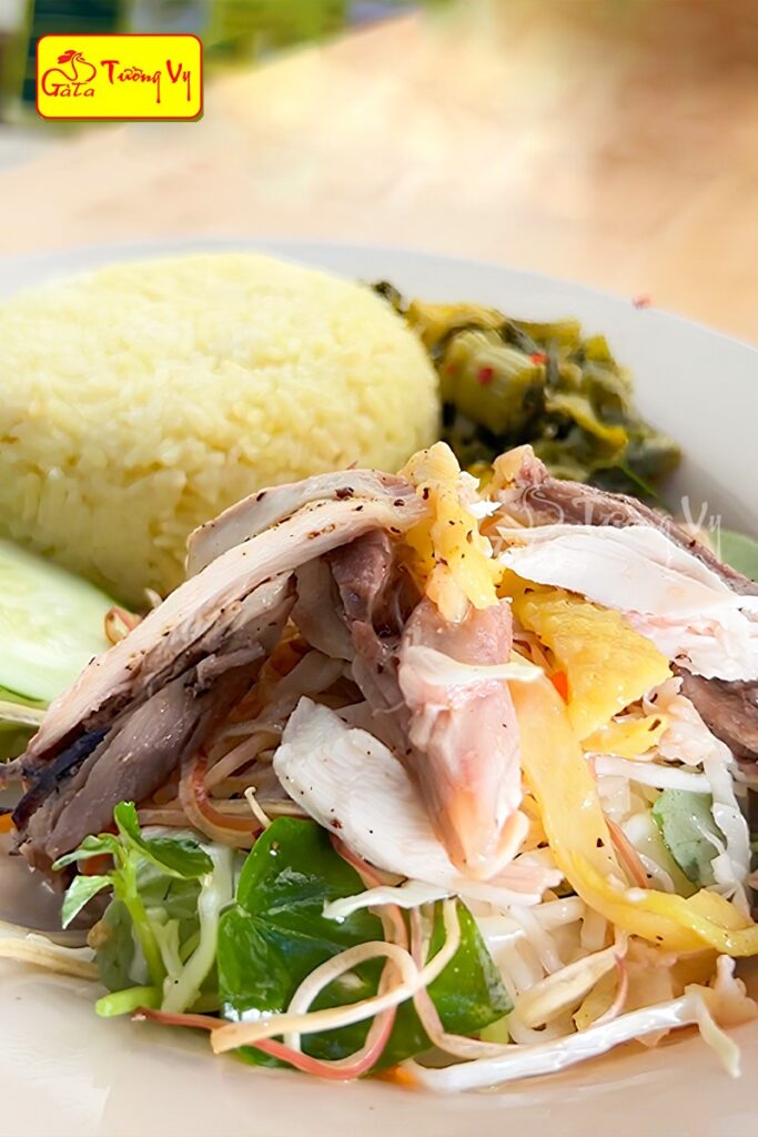 • Cơm nấu bằng nước luộc gà – vàng thơm nhẹ, ăn mãi không ngán.