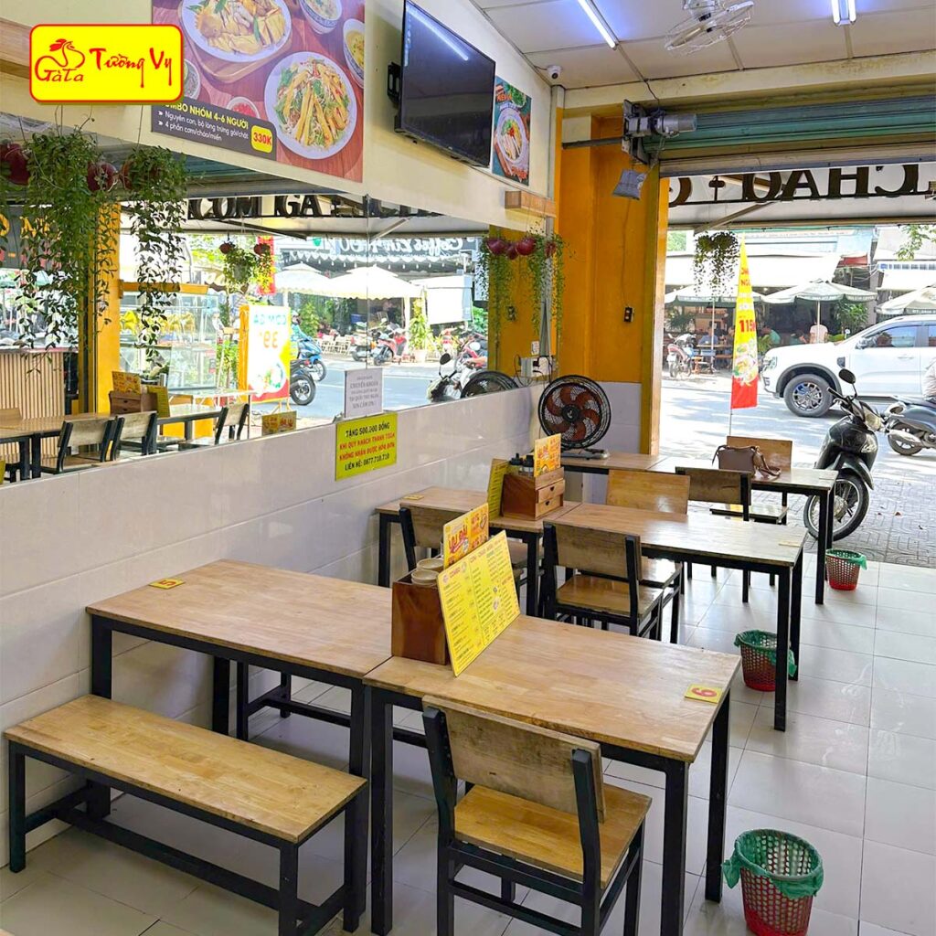 Gà Ta Tường Vy không chỉ là địa điểm thưởng thức ẩm thực mà còn là nơi sum họp gia đình, bạn bè. Với thiết kế không gian rộng rãi, thoáng mát, quán luôn mang lại cảm giác thoải mái, dễ chịu. Ánh đèn vàng ấm áp, bàn ghế gỗ sạch sẽ, cách bài trí giản dị nhưng đầy tinh tế tạo nên một không gian ấm cúng, gần gũi.
