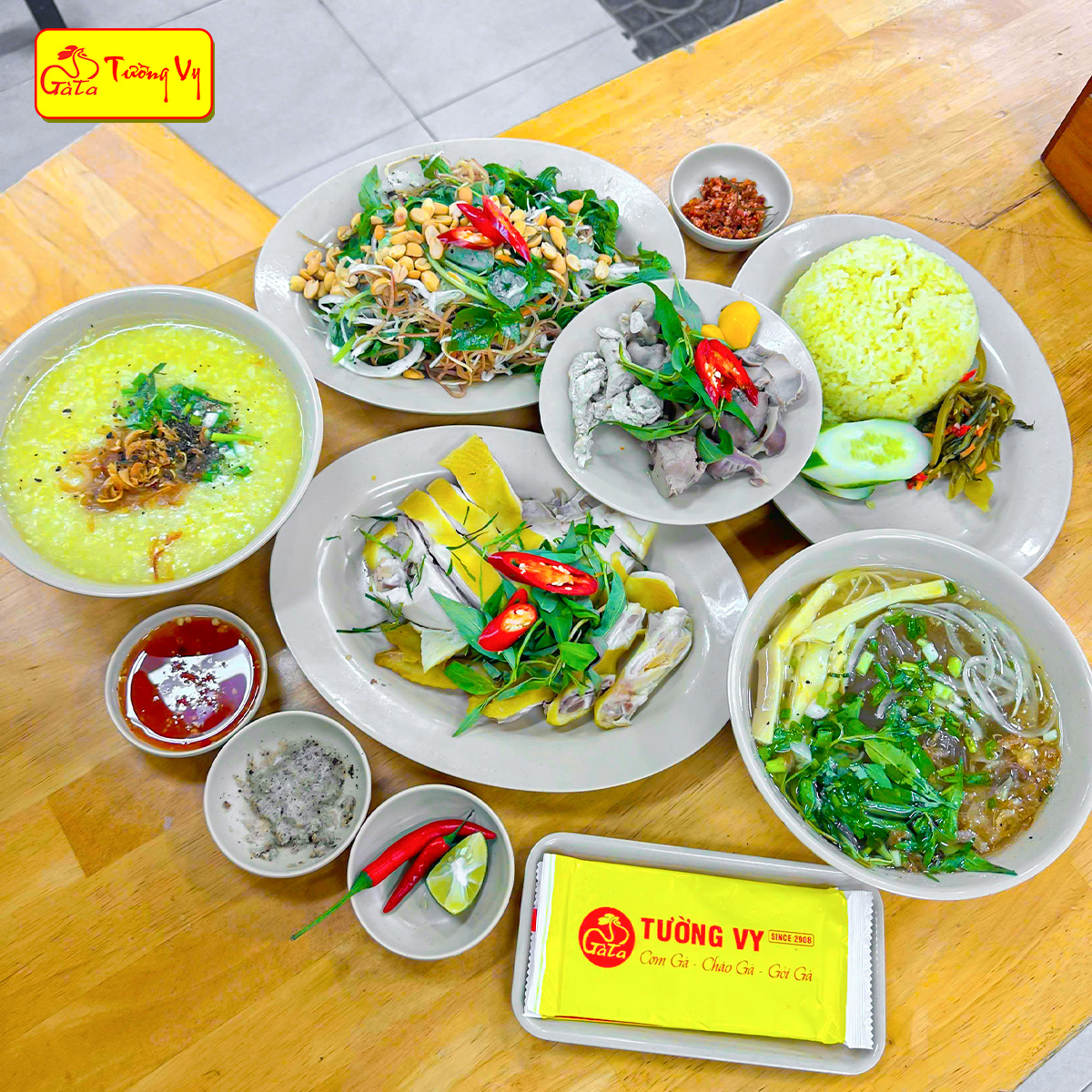 - Combo gà nguyên con: Gà luộc lá chanh, cơm gà, gỏi gà, cháo gà – đủ đầy cho cả nhà.